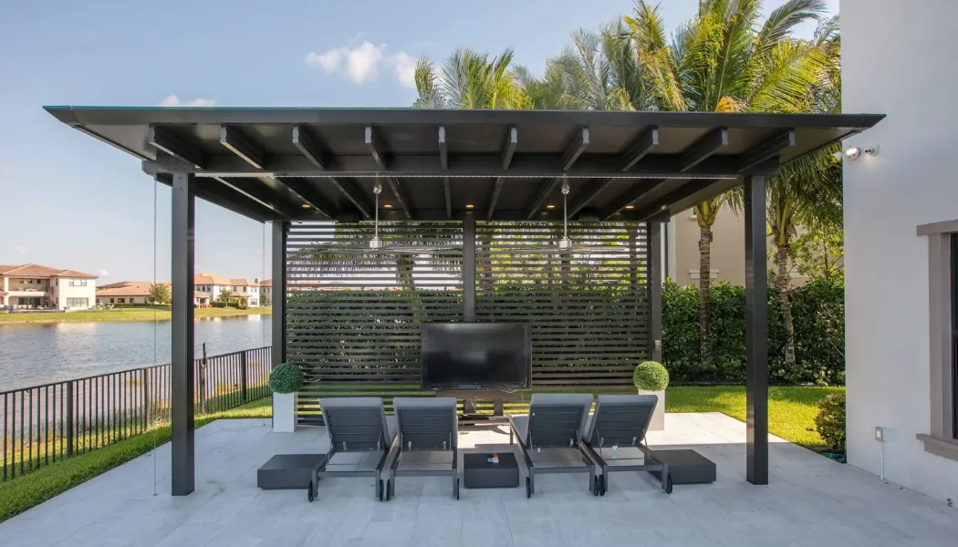 Perfect for creating independent backyard lounges or poolside retreats. These standalone architectural structures provide shade anywhere on your property.